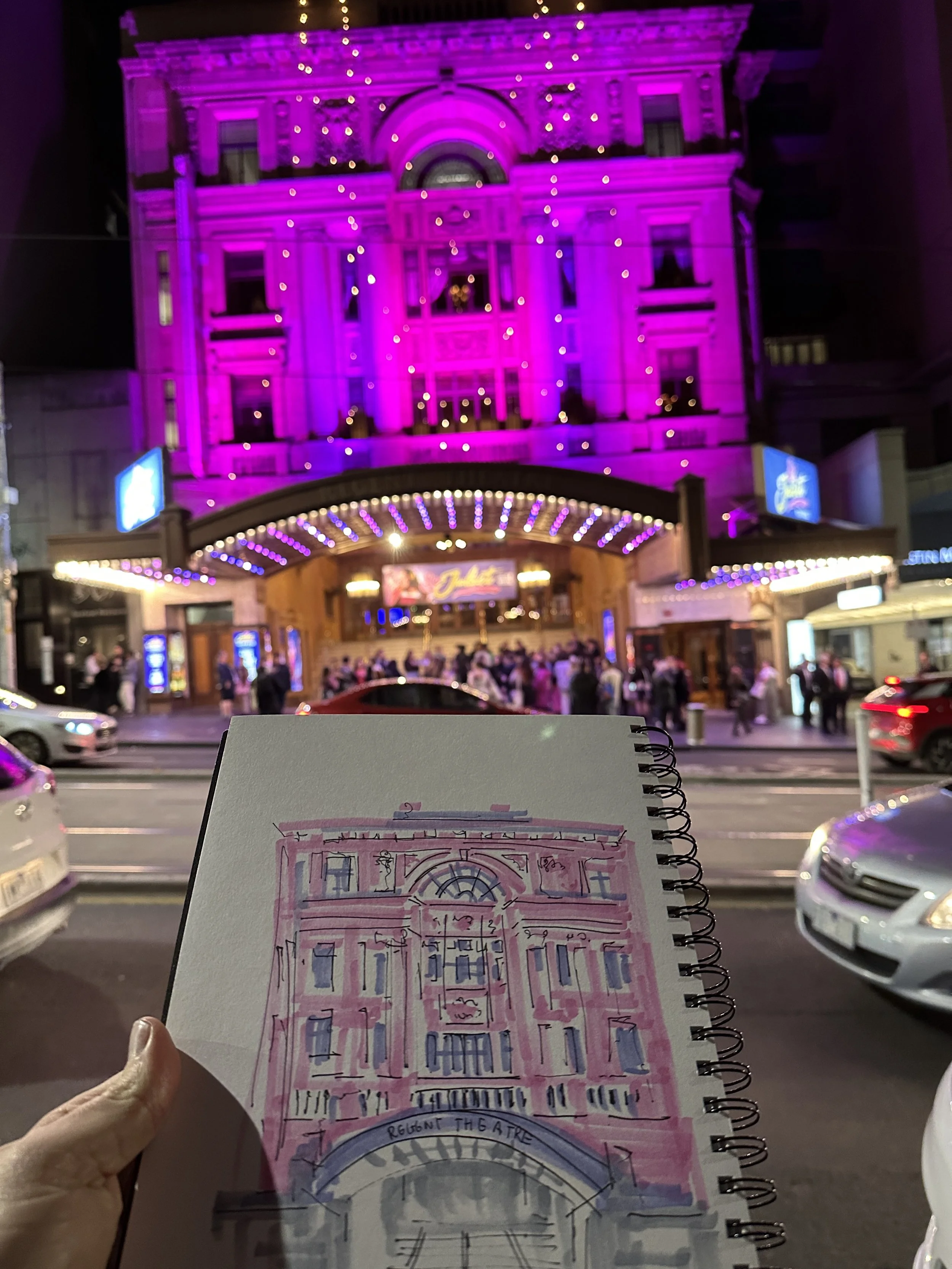 The regent theatre was illuminated in pink to celebrate the final night of the play &Juliet.